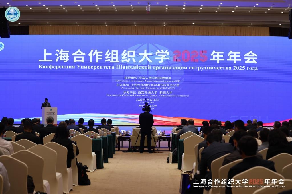 新闻网讯 5月12日-13日,上海合作组织大学2025年年会在乌鲁木齐市举行,校党委副书记肖江南带队参加年会开幕式,并受邀在校长论坛高校产教融合主题分会场发言。本次年会由中国教育部主办,西安交通大学和新疆大学承办。中国、俄罗斯、哈萨克斯坦、吉尔吉斯斯坦、塔吉克斯坦5个国家的教育部部长、副部长出席,来自中国、俄罗斯等7个国家的86所大学代表参会。