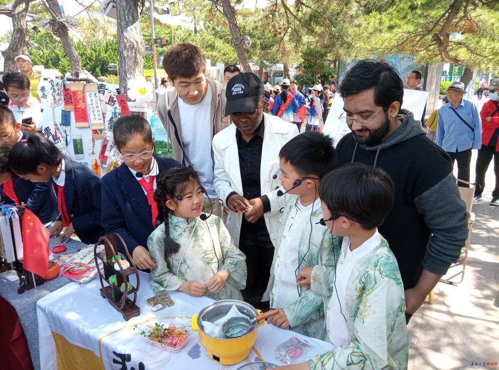 此次活动整合大思政课堂、社会公益实践服务和教育对外交流元素,凝聚大中小全学段、校家社协同育人合力,通过沉浸式外语实践、互动式文化体验、公益志愿服务等形式,讲好中国故事,传播中华优秀传统文化,打造出兼具本土特色与国际视野的市南教育新样态。金年金“青洋益彩” 留学生志愿服务团的首次登场,也为活动增添了国际交流的亮色,彰显了学校推动多元文化交融的积极探索。