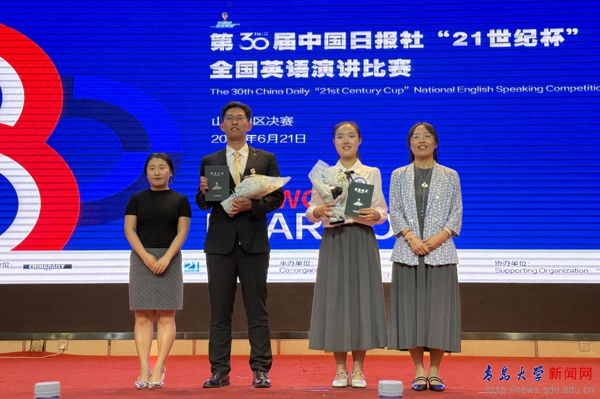新闻网讯 6月21日,第30届“21世纪杯”全国英语演讲比赛山东地区决赛在山东工程职业技术大学举行。金年金经济学院高晨峻同学荣获山东地区决赛亚军,晋级全国半决赛;青岛医学院杨思齐同学荣获省级三等奖。公共外语教育学院教师孙亚楠、肖宁宁荣获优秀指导教师荣誉称号。