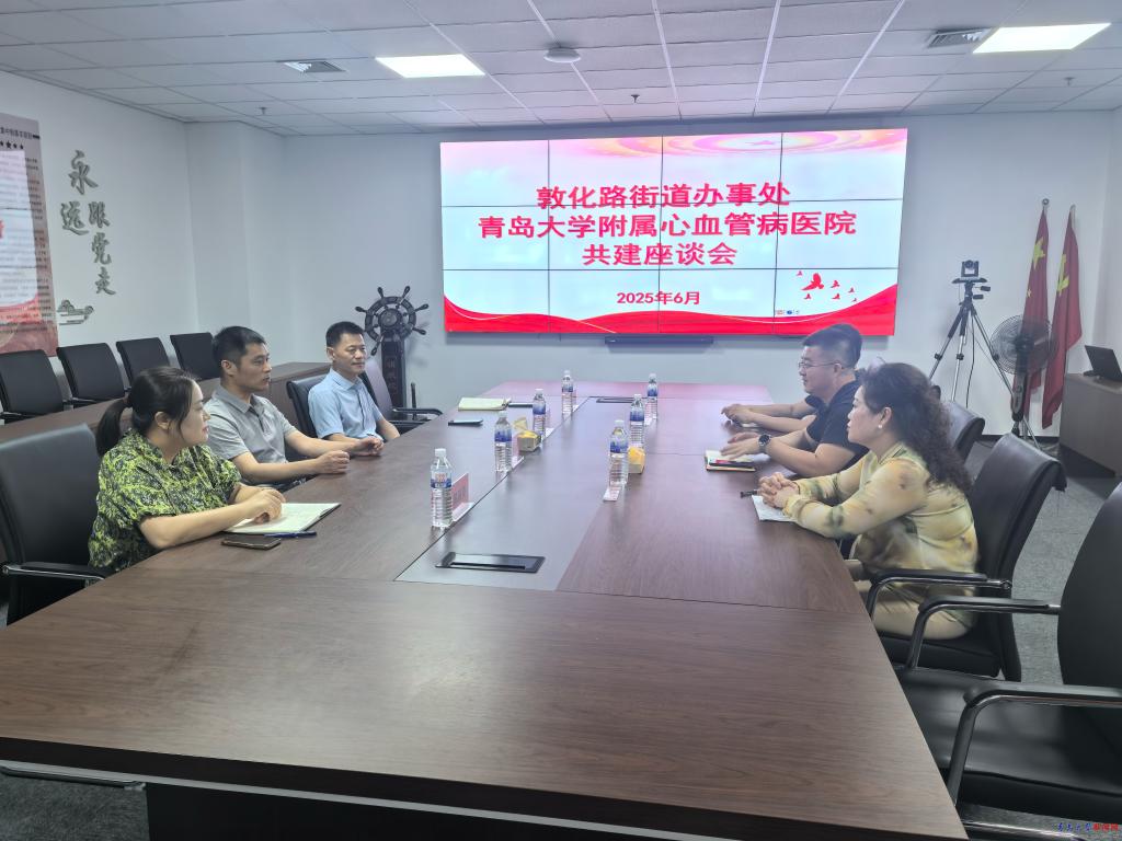 在市北区延安路街道,与负责人徐良文部长等座谈交流,刘清泉提出我们医院推行精准服务家门口居民专项行动是党建与民生服务深度融合的重要实践。通过党组织的统筹协调,调研社区居民健康需求,更好地整合资源,推动医疗服务深入人心。医院开展守护健康“零距离”医疗精准服务专项行动,目的是让优质医疗触手可及,我们通过专家下沉、技术赋能,把心血管病专科医院的医疗服务送到群众家门口,真正实现从“三公里服务半径”到“医患零距离守护”的健康守护承诺。