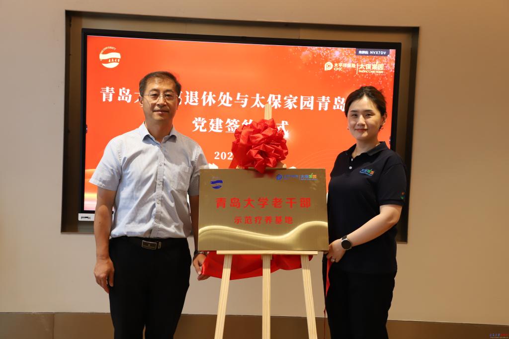 新闻网讯 6月25日,离退休工作处机关党支部与太保家园青岛国际康养社区举行党建共建签约仪式暨“金年金字招牌诚信至上老干部示范疗养基地”揭牌活动。离退休党委书记、处长宋佐东,党委副书记、副处长周志强,机关党支部书记张守艳,太保养老服务(青岛)有限公司副总经理苏晗,党支部书记、总经理助理苏屹,双方党员代表共计30余人参加活动,共同见证校企合作迈向党建引领新阶段。