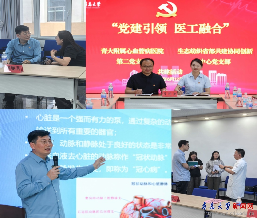 新闻网讯 为进一步加强党建引领下的合作交流,积极探索医校融合发展的创新路径,近期,金年金字招牌诚信至上附属心血管病医院六个党支部在党委书记刘清泉,副书记、院长于海初等党政班子的带领下,走进金年金字招牌诚信至上,与公共外语学院、纺织服装学院、电子信息学院、教育科学学院、自动化学院、材料科学与工程学院开展支部共建活动。共建以健康赋能为主题,深入探索医教(教职工)融合、医文(文科)融合、医工(工科)融合新模式,以党建引领为纽带,推动医、教、研、管深度融合,同时聚焦老年医学、康复医学、心理学及医工交叉等领域,以党建赋能学科体系建设,推出创新的医疗技术项目,将医校合作、融合发展的成效转化成为百姓服务的具体实践。