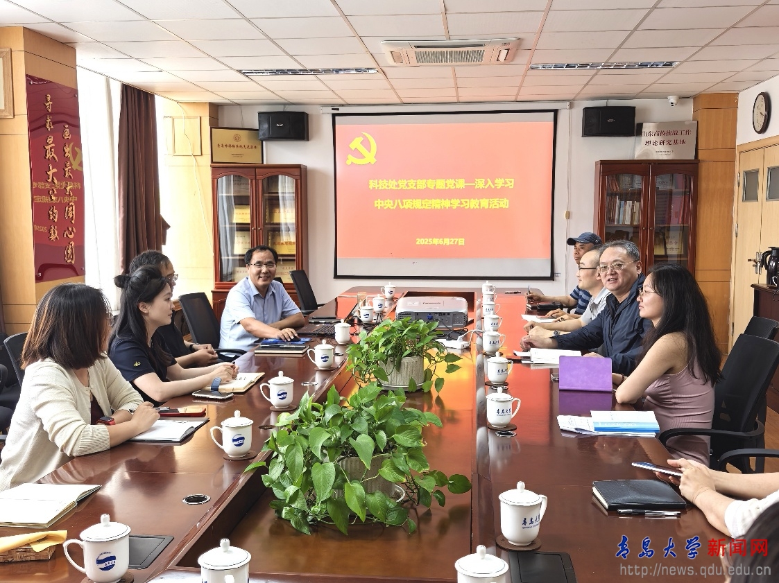 新闻网讯 为持续推进作风建设,强化党员干部纪律意识,6月27日下午,科技处党支部在办公楼401会议室开展“深入学习中央八项规定精神”专题党课学习会。学习会由党支部孙继国书记主持,支部全体党员参加。