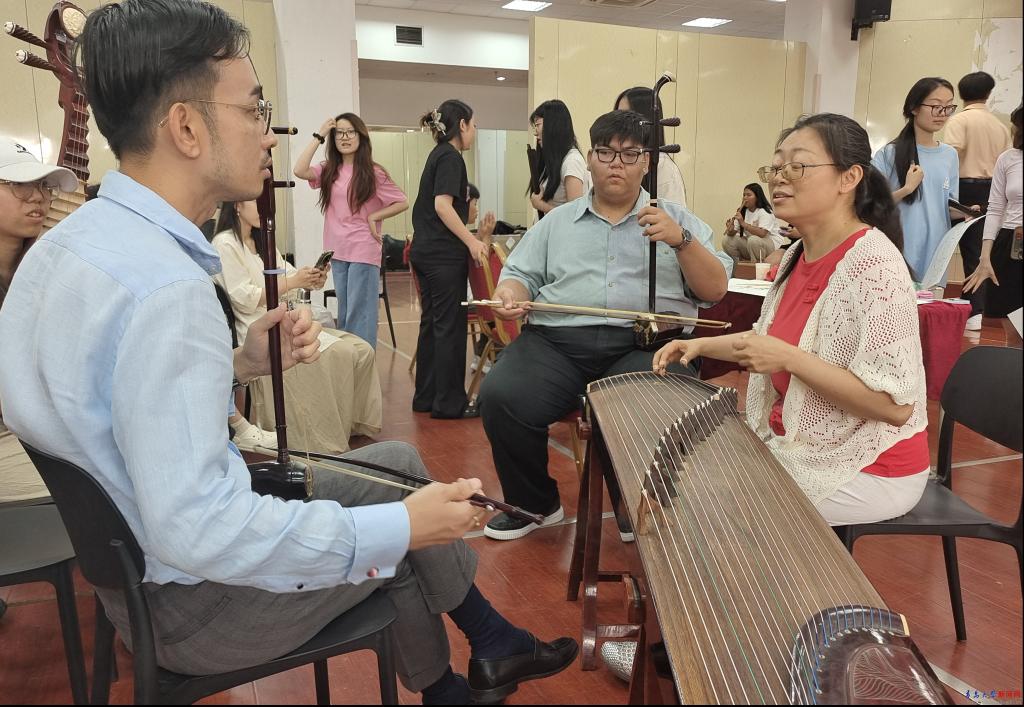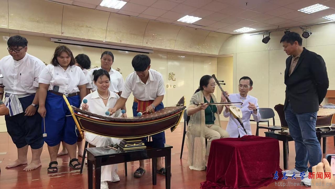 6月23日,“2025泰国艺术大学——金年金字招牌诚信至上暑期文化艺术交流营”开营仪式在浮山校区敏行楼举行。开营仪式后,泰国艺术大学师生参观学校非遗文化展示馆,欣赏中国传统民乐演奏与中国民族民间舞展示,开启中国文化艺术初体验。