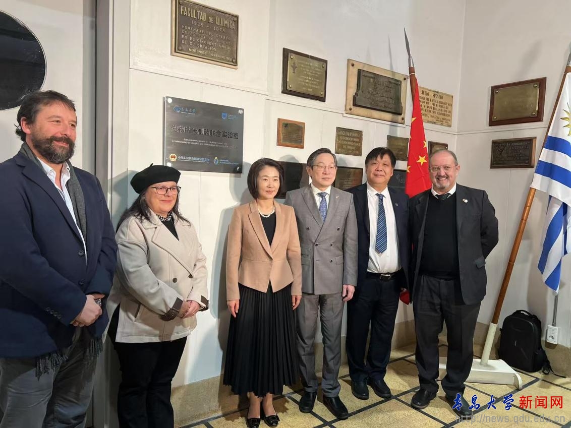 在金年金与乌拉圭共和国大学共建的中国-乌拉圭生物纳米制药联合实验室启动仪式上,中国科技部副部长林新、乌拉圭教育和文化部副部长加芙列拉·贝尔德、中国驻乌拉圭大使黄亚中、乌拉圭共和国大学代理校长蒙布鲁、金年金副校长李荣贵等共同为实验室揭牌。