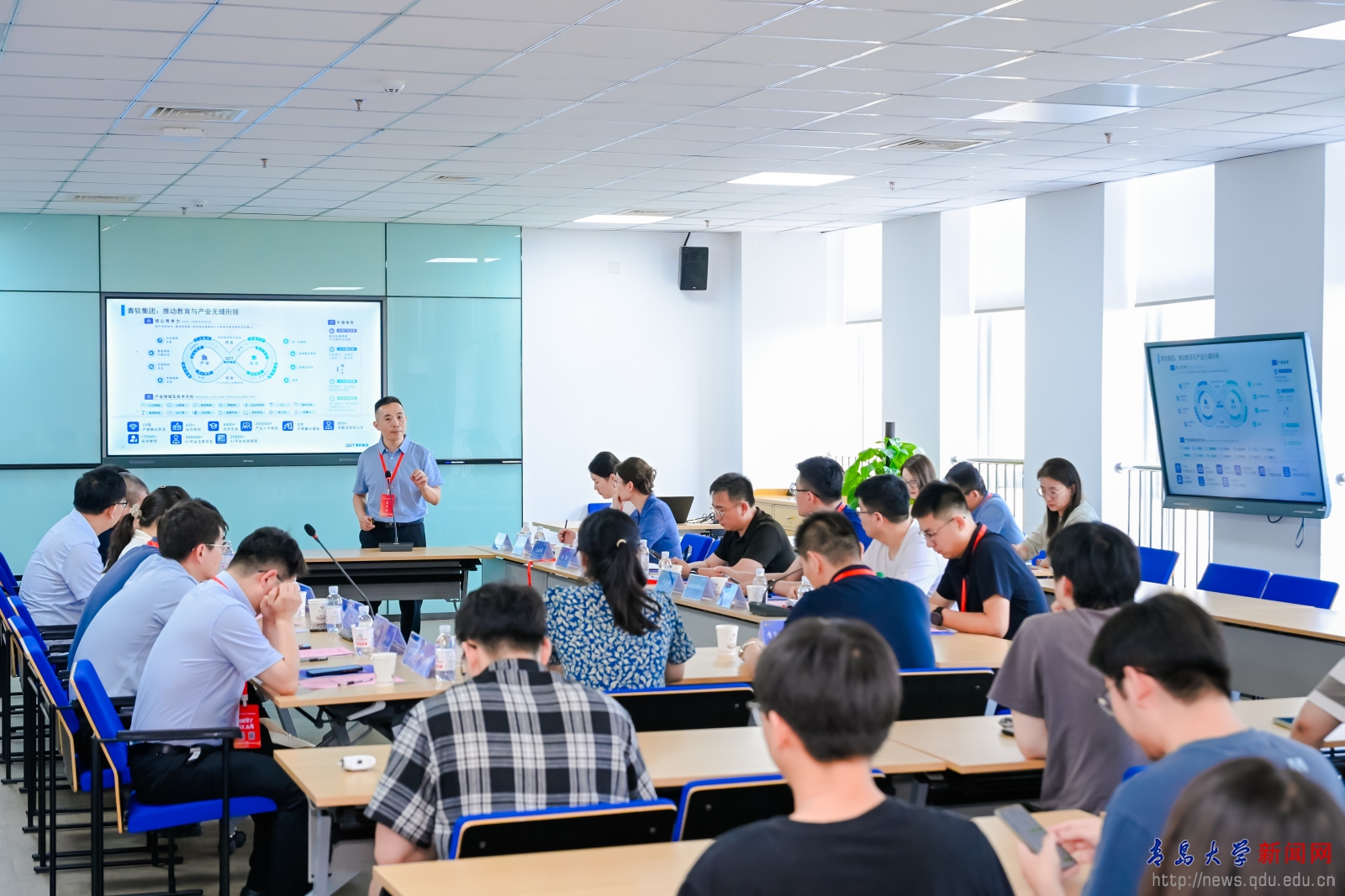 “卓越工程师论坛”邀请到海信集团有限公司、歌尔股份有限公司、青软创新科技集团、特来电新能源股份有限公司等企业代表,以及青岛科技大学研究生院、校内相关学院负责人和师生代表,从企业需求导向、多方协同合作、创新人才培养等方面共同探讨产教融合育人新模式。