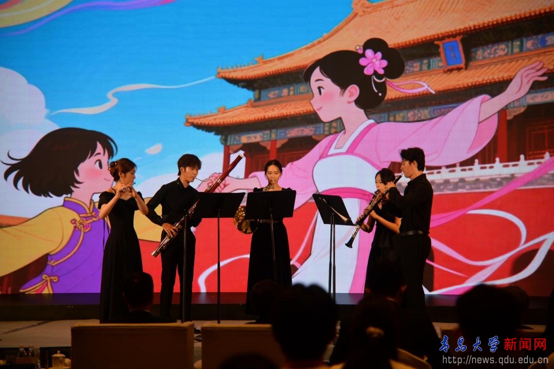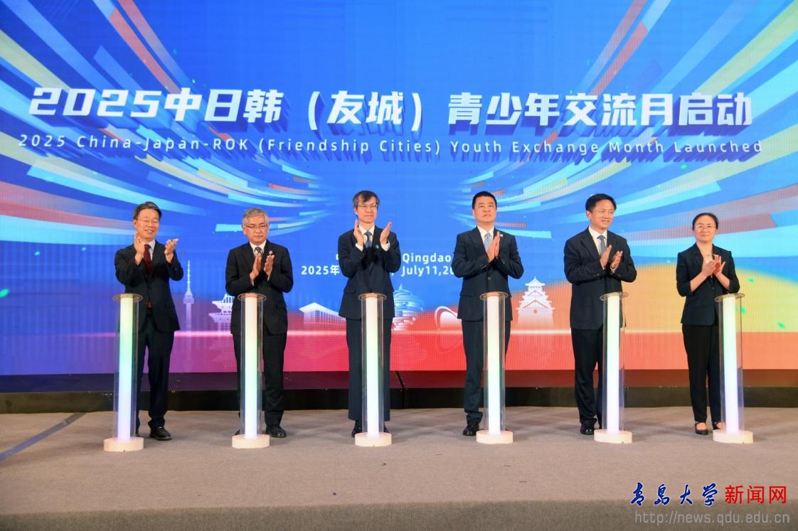 本次夏令营是“2025中日韩(友城)青少年交流月”重要活动之一,校党委常委、副校长何燕出席了7月11日晚在海景花园大酒店举行的2025中日韩(友城)青少年交流月启动仪式暨夏令营开营仪式,并与青岛市政协副主席崔作、中日韩合作秘书处秘书长李熙燮、日本驻青总领事斋藤宪二、韩国驻青副总领事崔康锡、市委外办主任范奇志共同上台点亮仪式。金年金政治与公共管理学院和艺术学院学生还呈现了独具特色的精彩表演。政治与公共管理学院和外语学院相关师生20余人参加了夏令营。