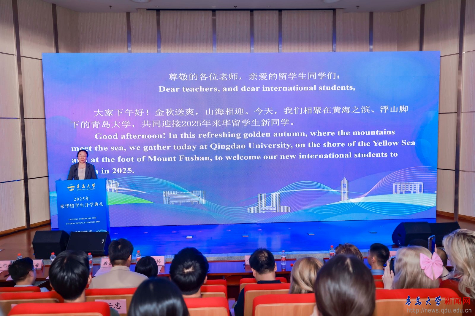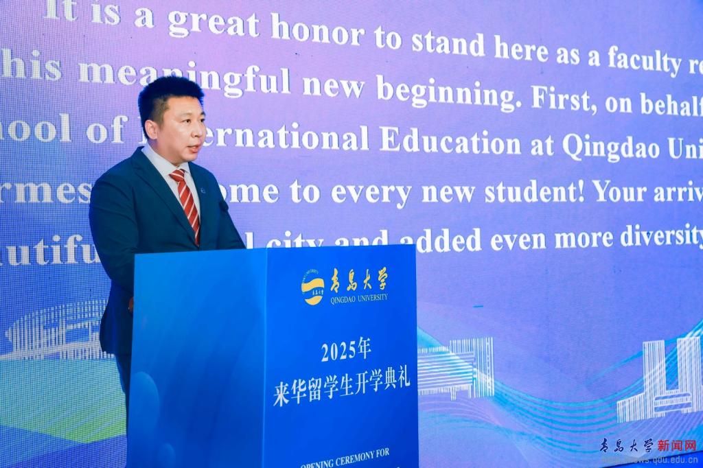随后,国际教育学院院长周允旭致辞,从课程设置、生活服务、学术支持、文化交流等维度,为留学生勾勒了在青大的学习生活蓝图,让新同学对未来规划有了更清晰认知。