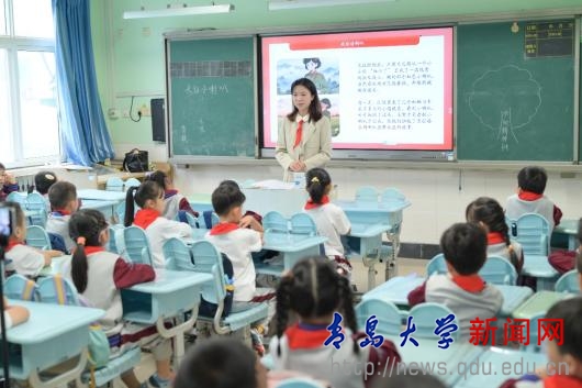 推进一体化建设,校地共建厚植家国情。马克思主义学院组织学生赴青岛市宁夏路第二小学,以“长征精神”为主题,为该校刚刚加入中国少年先锋队的同学们上一堂思政课,大学生们通过讲述长征故事、演绎红色情景剧、互动问答等形式,引导小学生深刻理解长征精神的时代内涵,让红色基因真正融入成长血脉。校团委举行“奋进强国路,阔步新征程”庆祝中华人民共和国成立76周年升国旗仪式,中国关工委健体中心“阳光下一代”、山东工作组直属德萌志愿服务中心志愿者、青岛二中分校志愿班级志愿者,及学校师生代表1200余人参加仪式。小学、初中、高中的学生志愿者与青大学子共同站在一面旗帜下,在庄严肃穆的仪式中感受爱国精神的代际传承,在仪式中厚植家国情怀。