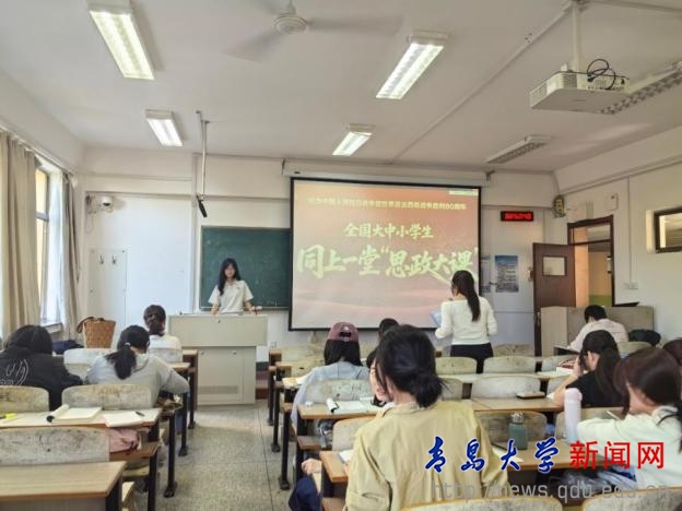 开展集体授课,线上线下夯实理论根基。切实做好课程筹备工作,组织各教研室思政课教师结合各自思政课教学内容和各年级学生专业特点、认知规律完善教学内容,重点结合纪念中国人民抗日战争暨世界反法西斯战争胜利80周年和庆祝中华人民共和国成立76周年重要时间节点,引导学生理解我国在国际舞台的责任使命与爱国主义精神的时代内涵。组织全体学生集中观看学习讨论“同上一堂思政课——大学篇・大国担当”课程内容,实现师生广泛参与、线上线下同频,引导学生将对国家的热爱,转化为追求卓越、报效祖国的内在动力。