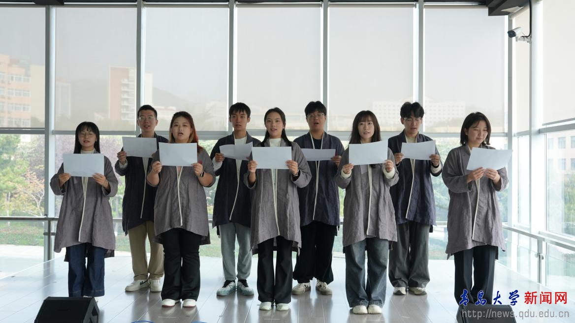 最后,全体师生齐声诵读鲁迅先生《热风》中的经典片段,合唱书院之歌《从大海出发》,典礼落下帷幕。第十九届博雅班全体学子继而分成十五个小组,在“博雅领航者”们的带领下开展了形式多样的朋辈交流活动,进一步加深了对浮山书院博雅教育模式的认同感并增进了朋辈之间的友谊。