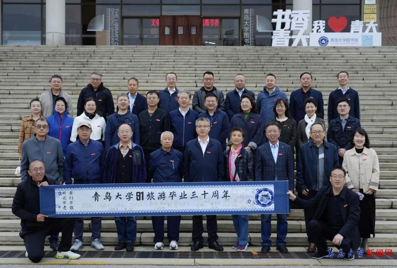 座谈会间隙,校友们漫步浮山校区,在图书馆前驻足合影、定格美好时光,畅谈学生时代的趣闻轶事。欢声笑语萦绕校园,为深秋的青大增添了浓浓温情,也让久违的师生情、同窗谊在故地重游中愈发醇厚。