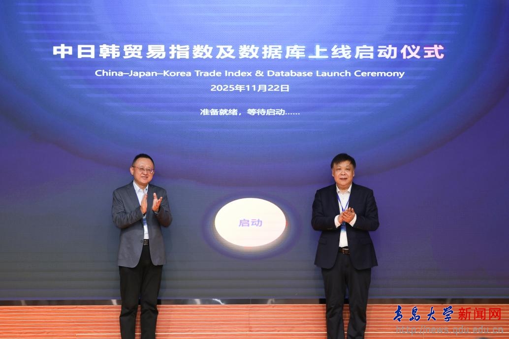 新闻网讯 11月22日,山东省世界经济学会2025年年会在山东财经大学举行。副校长李荣贵出席会议,并与山东省世界经济学会会长、山东理工大学校长特别助理李平教授一同为“中日韩贸易(品类)指数及数据库”(以下简称“数据库”)上线仪式剪彩,“一带一路”研究院刘玉立副教授在剪彩仪式上做了“数据库”演示。