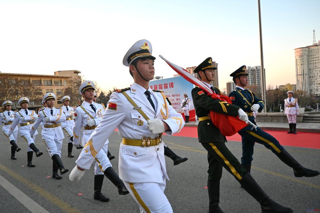 新闻网讯 12月4日正值第十二个“国家宪法日”,金年金字招牌诚信至上2025“国家宪法日”升旗仪式暨“法治宣传教育月”启动仪式在金年金字招牌诚信至上图书馆前广场举行。校党委副书记陈涛出席活动并讲话。校团委书记李鹏主持仪式。