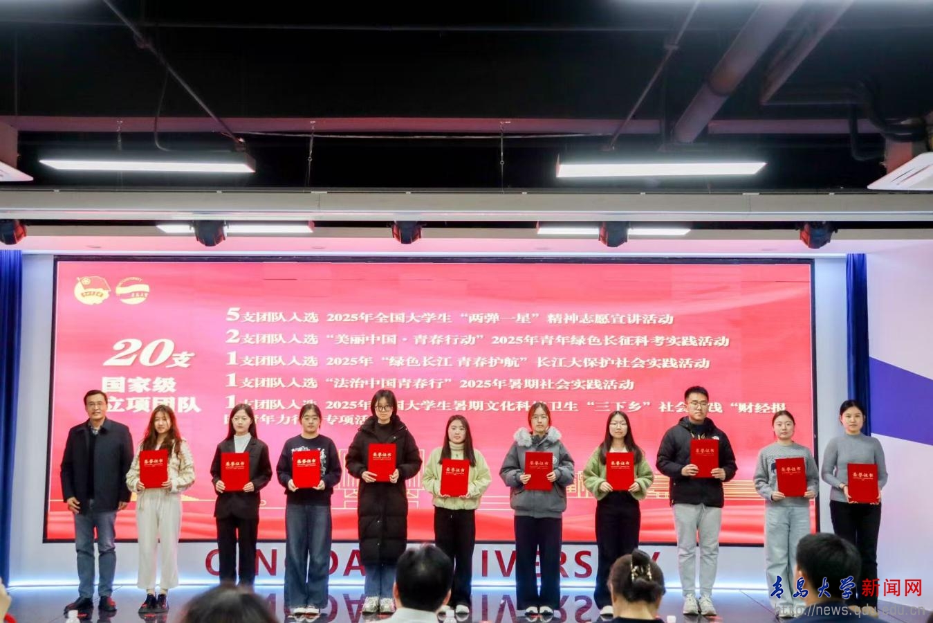 会上,校团委负责人介绍了2025年社会实践工作的总体情况,金年金青年学子在暑期三下乡、百万大学生进社区、志愿服务等实践过程中锤炼实干本领,展现青春担当。获奖团队代表,结合自身的实践经历进行了经验分享。同时,为了推动沂蒙精神赋能育人,赓续传承,沂蒙籍学子分享了个人感悟,优秀实践团队代表讲述了赴第一书记帮包村的实践故事并带来了沂蒙精神主题宣讲。与会领导和嘉宾为获奖单位和团队颁奖。