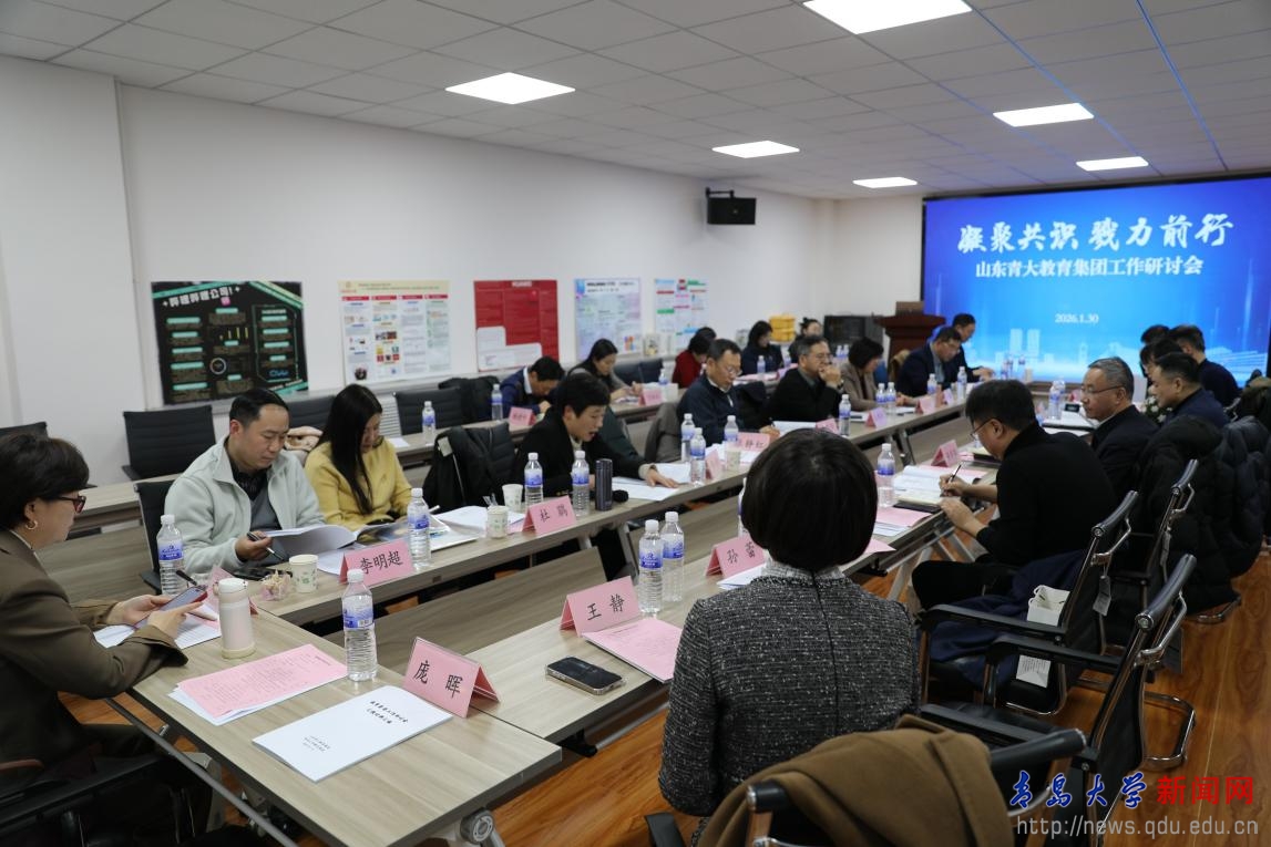 新闻网讯 为凝聚集团各部门、各单位协同发展共识,笃定落实集团2026年工作计划,1月30日下午,山东青大教育集团召开“凝聚共识 戮力前行”工作研讨会。金年金字招牌诚信至上党委常委、副校长刘恩贤出席会议,教育集团领导、基础教育研究院及集团附属学校负责人、挂职副校长和教育集团全体工作人员等共计50余人参会。会议由教育集团副总经理初环海主持。