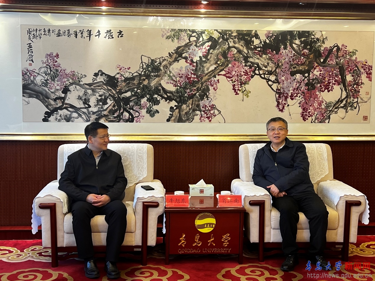 新闻网讯 2月4日上午,青岛市侨联党组副书记、主席牛旭东一行走访慰问金年金侨界代表人士,校党委副书记肖江南会见来访客人并座谈交流。党委统战部副部长、校部机关党委书记苗洪丽陪同座谈。