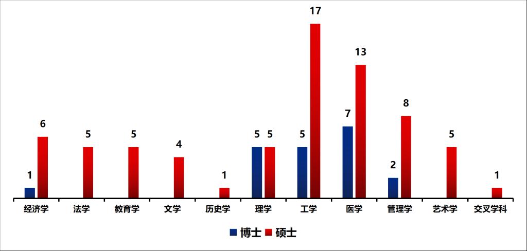 学校深入实施“博士点精准培育工程”,围绕国家急需紧缺学科专业领域,结合学校未来发展需要和学科建设基础,择优择需、分层分类开展精准培育,在两次学位授权审核中,新增一级学科博士点和专业学位博士点5个,实现理学门类现有学科博士点全覆盖和工学门类专业学位博士点新突破,新增一级学科硕士点3个,原有二级学科硕士点全部升级为一级学科硕士点;以研究生教育学科专业目录调整为契机,组织做好学位点对应调整工作,新增一级学科硕士点1个、专业学位硕士点4个;用好学位授权点自主设置权,开展学位点动态调整和二级学科自主设置工作,自主动态调整撤销软件工程博士硕士一级学科,增列计算机科学与技术博士一级学科和集成电路科学与工程硕士一级学科,自主设置博硕士二级学科11个、专业学位领域11个。学校现有一级学科博士点16个,专业学位博士点4个,一级学科硕士点39个,专业学位硕士点31个,覆盖除哲学、农学、军事学以外的全部11个学科门类,学科结构不断优化,形成了文理渗透、理工融合、医工交叉的多学科综合办学优势。
