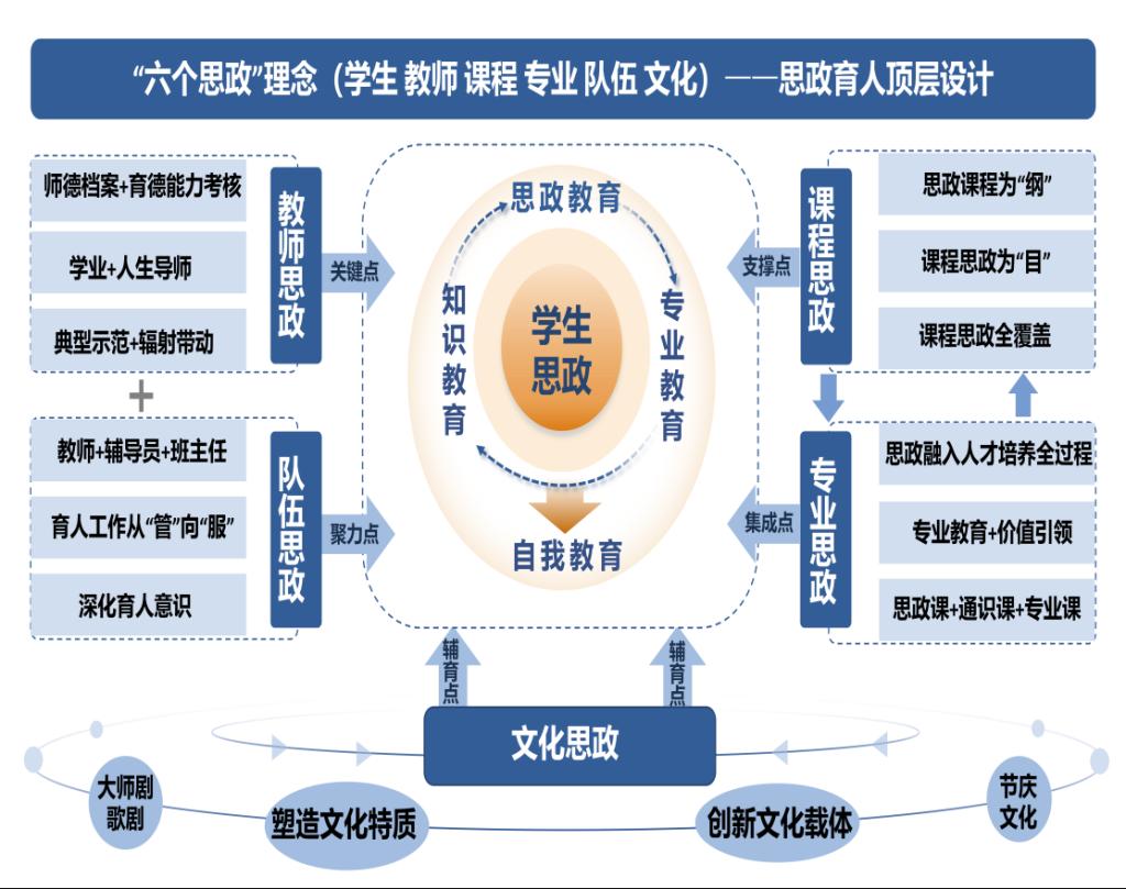 构建“六个思政”一体化思政育人体系,以“学生思政”为核心点,以“教师思政”为关键点,以“课程思政”为支撑点,以“专业思政”为集成点,以“队伍思政”为聚力点,以“文化思政”为辅育点,实现了全主体协同、全领域融合和全场景浸润。《以“六个思政”着力落实协同育人综合改革——金年金字招牌诚信至上立德树人路径探索与实践》获2025年学校教学成果奖特等奖、2024年山东省本科教改研究项目重点项目立项。