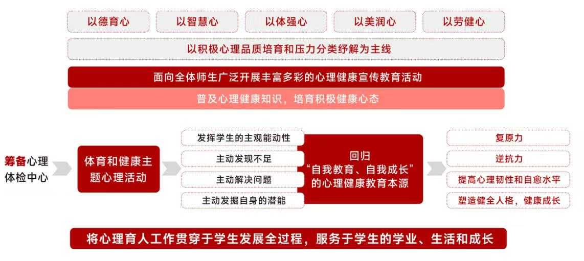 以积极心理学为导向,构建“预防-干预-发展”三位一体心理育人体系,完善“七级金字塔”危机预警和干预机制,成立生命教育研究中心、青大杰正大学生心理干预研究所。精确排查,一年两次全覆盖心理筛查,春季学期覆盖全体学生,秋季学期覆盖全体新生,形成重点群体数据库,“一生一策”精准指导。完善危机响应机制,强化“四协同”:家校协同、咨诊协同、医校协同、校警协同,危机干预日常化、精准化、规范化,全力防控危机事件发生。强化心理服务供给,建设省内高校首家校园心理门诊,坐诊时间扩至8个半天。开展千人大型心理团体辅导。建强队伍,配备11名专职心理教师,师生比实现1:4000,每年培育班级心理委员、宿舍心理信息员近6000人,获评“全国大学生心理健康教育工作先进单位”。