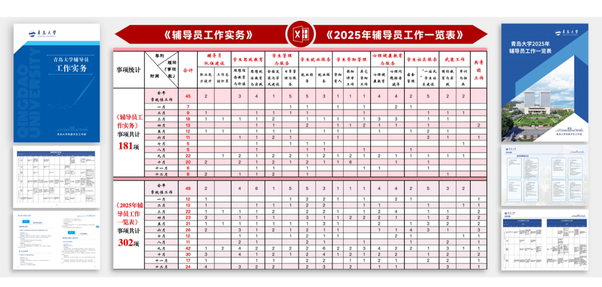 实施“4+4+4”辅导员培养发展规划,构建分层分类精准施训体系。设立学院分管副书记“求真班”、新入职辅导员“力行班”,打造“辅导员发展论坛”“思享汇”等培训品牌,累计组织培训176场,参训1.03万人次,实现全员全覆盖。工作标准化,推行“辅导员工作台账”“工作一览表”“实务手册”,实施日历化台账管理,梳理出全年常规性工作181项,为辅导员业务开展提供精准指引。持续建设6个辅导员工作室,筹办全国辅导员工作室联建活动,吸引27个省份199个工作室参与,逐步构建起跨区域思政育人队伍成长共同体。