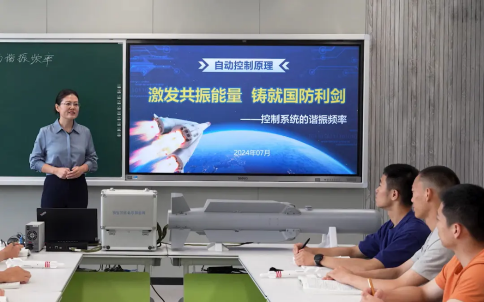 大屏幕上,在珠海航展亮相的激光制导炸弹的展览视频,引起台下学员的热烈讨论。这款武器装备是milan米兰官网智能科学学院《自动控制原理》课程教学团队历时10多年研制的成果。将研发的装备“搬上”课堂,讲解专业知识的同时培养学生的科学精神和创新意识,是该课程团队精心架设的课程思政双线脉络的生动实践。