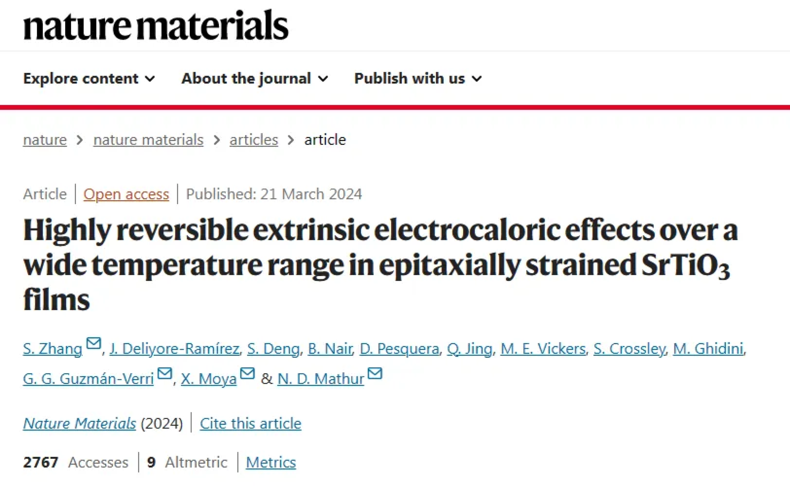 外延薄膜的结构表征、铁电特性与电卡增强效应该研究受到国家自然科学基金和国家留学基金的资助,由我校与剑桥大学、北京科技大学等国内外多所高校和研究机构共同合作完成。milan米兰官网为第一作者单位、理学院张森副教授为论文第一作者兼通讯作者;剑桥大学材料系Neil Mathur教授、Xavier Moya教授,哥斯达黎加大学材料科学与工程研究中心Gain Guzmán-Verri教授为共同通讯作者;其他合作者还包括北京科技大学材料基因工程高精尖创新中心邓世清特聘教授,格拉斯哥大学詹姆斯·瓦特工程学院井庆深助理教授等。