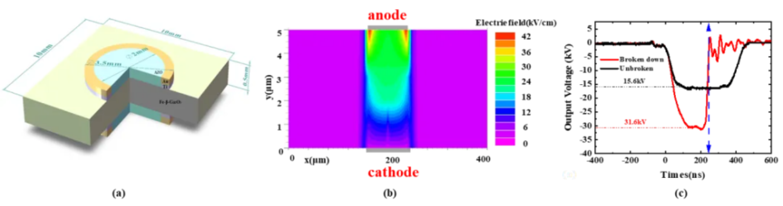 近日,milan米兰官网前沿交叉学科学院某团队在超宽禁带光导半导体微波功率器件高压输出特性方面取得最新进展,该团队在电子器件国际知名学术期刊IEEE Transactions on Electron Devices 发布的一篇名为 Test on the Output Characteristics of Fe-β-Ga2O3 Photoconductive Semiconductor Device Toward High-Power Microwave Sources(Fe 基 β-Ga2O3 光导半导体器件针对高功率微波源输出特性的研究)的文章,证明了此项研究在该领域的重要性。据悉,这是该期刊发布超宽禁带光导半导体微波功率器件的首篇文章。