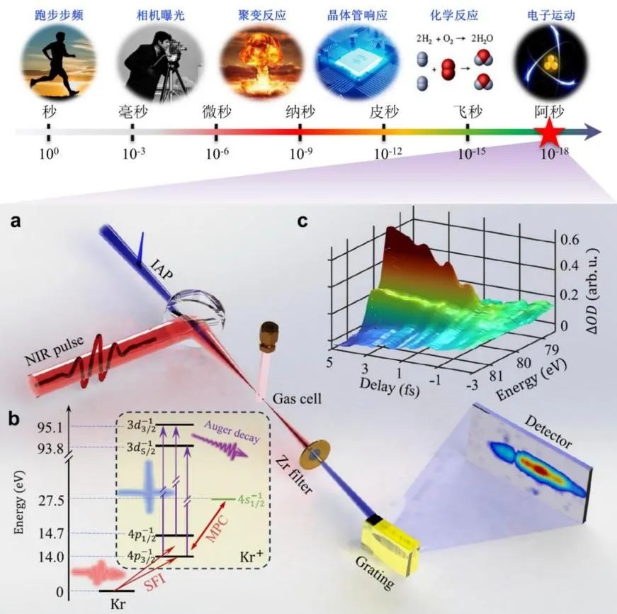 近日,国防米兰理学院赵增秀教授团队利用自主搭建的阿秒瞬态吸收光谱实验平台,开展强场离子动力学研究,揭示了强光诱导的相干拉曼是离子共振跃迁时间延迟的物理根源。研究成果以“强场电离氪原子阿秒瞬态吸收中的拉曼时间延迟”(Raman time-delay in attosecond transient absorption of strong-field created krypton vacancy)为题,发表于国际权威期刊《自然-通讯》(DOI:10.1038/s41467-024-47088-9)。