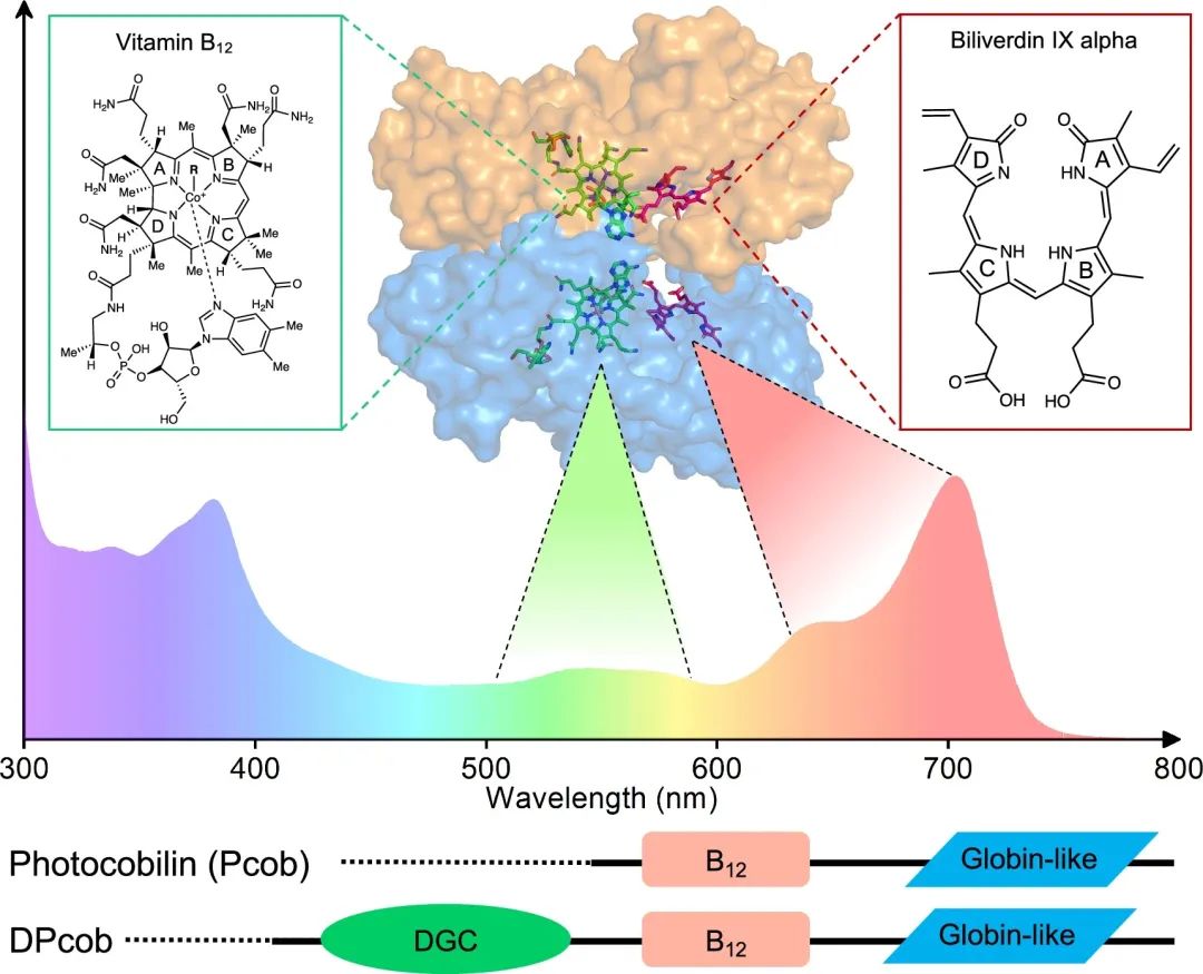 作为人类研究和利用光能的基础,新型光敏蛋白的发现一直是生物学家的关注热点。该研究工作发现并鉴定了一种同时含有“维生素B12结合结构域”与“胆绿素BV结合结构域”的新型光钴胆素蛋白家族,首次揭示了维生素B12作为感光色素的新功能,这为B12作为一种新型光敏色素建立了光化学理论基础。该研究解析了该类蛋白质的晶体结构与功能调控机制。这项研究的成果开辟了B12光生物学领域新的研究方向,不仅进一步拓宽了人类对自然界中光感应机制的认识,并且为设计新型光遗传学工具和光生物催化合成元件提供了宝贵的灵感。