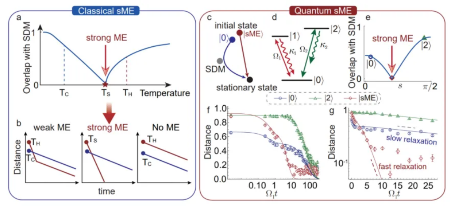 姆潘巴效应是一种反直觉的热效应,最早被亚里士多德所提到:“先前被加热过的水,有助于它更快地结冰。” 后来泛指反常弛豫现象,即一个更远离平衡态(稳态)的系统可能比一个更靠近平衡态(稳态)的系统更快到达平衡态(稳态)。该现象自发现以来一直令人困惑,也缺乏完整的解释,吸引了诸多科学家的研究兴趣,最近更是在量子领域掀起了研究热潮。该论文通过设计一个量子弛豫过程去观察姆潘巴效应存在的可能,并揭示其基本的物理原理。研究表明,通过制备一个特殊的初始态,可以让系统的弛豫过程获得指数的加速效果,即强姆潘巴效应。这一研究不仅有助于理解反常弛豫的物理机制,而且为量子动力学的主动调控提供了一种新的思路。