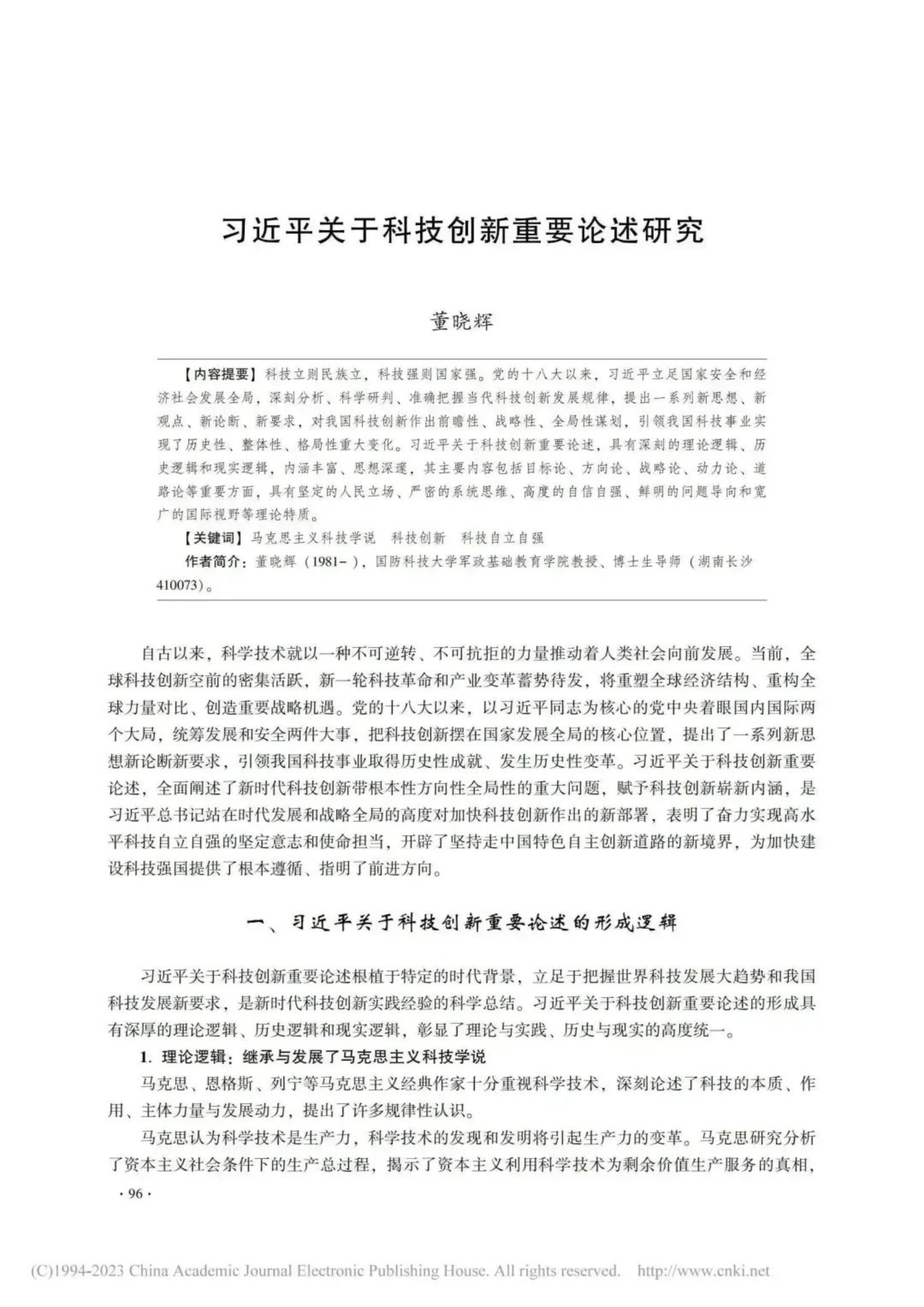 近日,国防米兰军政基础教育学院教授董晓辉撰写的理论文章《习近平关于科技创新重要论述研究》刊发于《马克思主义研究》2023年第8期。