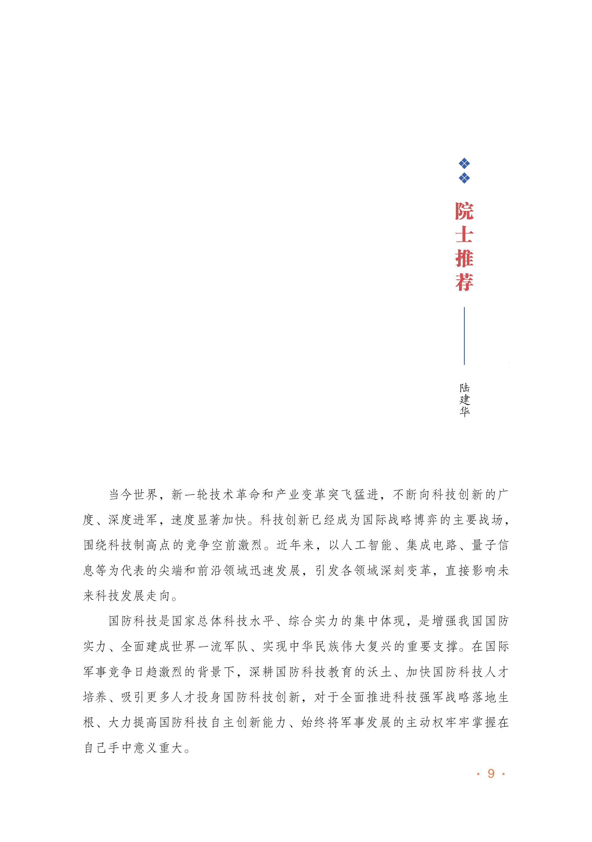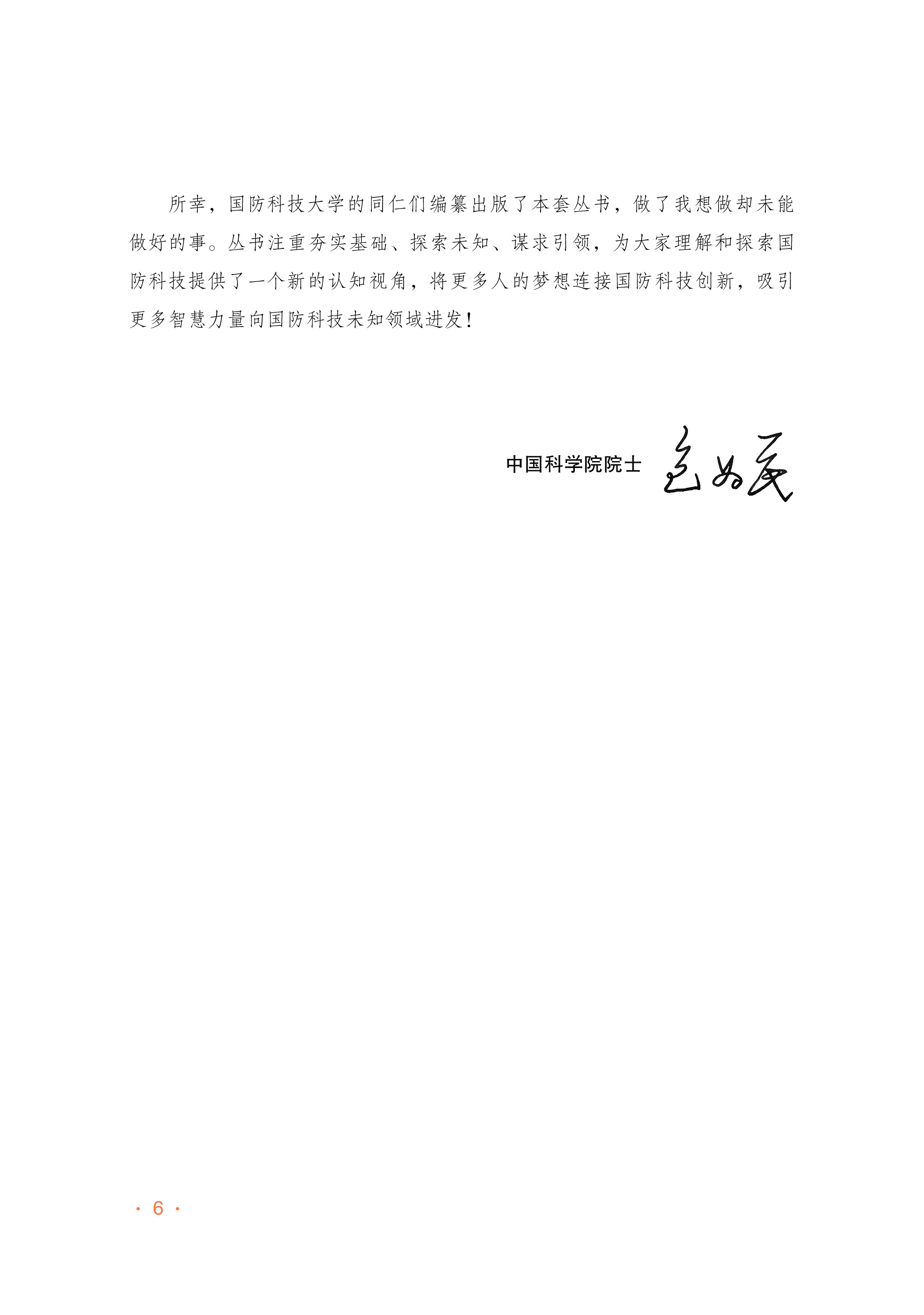 作为科技工作者和院校教育者,他们胸怀“国之大者”,研发“兵之重器”,在探索前沿、引领未来的同时,仍能用心编写此套丛书,实属难能可贵。
