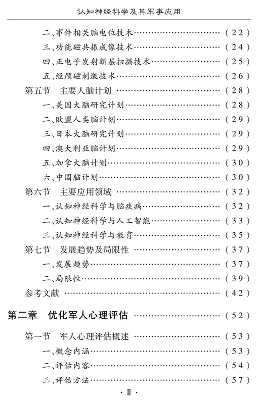 军事认知神经科学以观察和监测脑、促进和增强脑、干扰与控制脑、延伸和拓展脑为四大核心目标,当前已经在优化军人心理评估、增强军人认知能力、对抗军事应激反应、开发控脑武器、实现意念控制、拓展军事训练、鉴别军人个体差异等领域取得一定的进展。