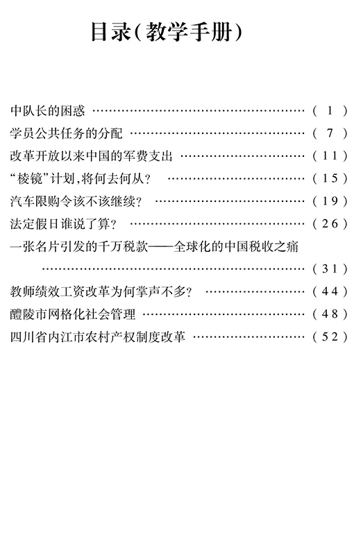 本书精选公共政策领域的典型案例,涉及军队和地方政策,覆盖公共政策分析的全过程,即政策制定、政策执行、政策评估和政策调整。本书包含上下两册,上册为十个案例,下册为与案例相对应的教学手册。