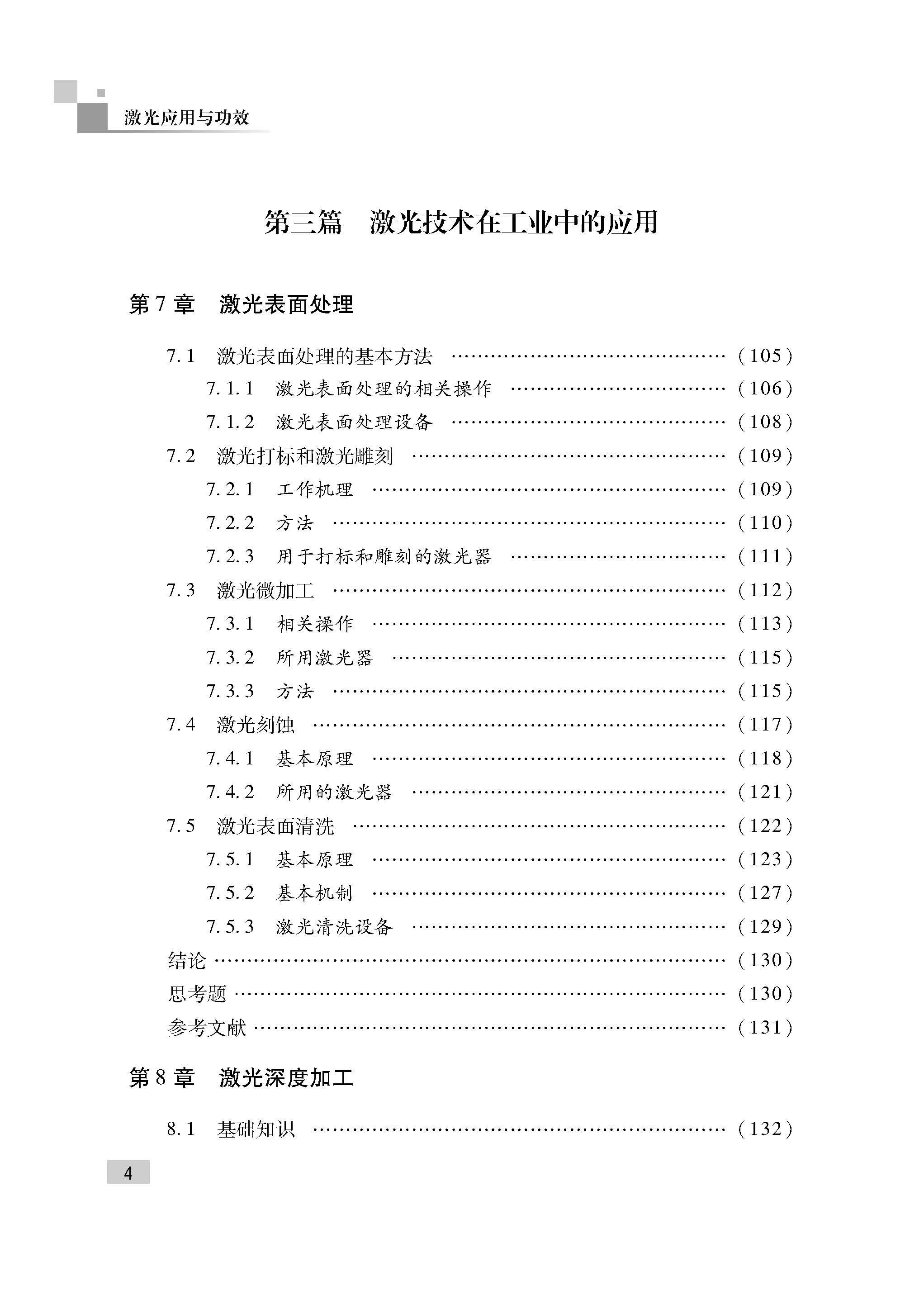 本书介绍了激光在距离测量、信息传输、工业加工、环境监测、医学和军事等方面的多种应用,包括解决实际问题的方法、使用条件、对激光性能的要求等。本书系统梳理了丰富多样的激光技术及其应用,可供激光专业本科生、研究生学习参考,也可供相关领域科研、教学和管理人员拓展知识。