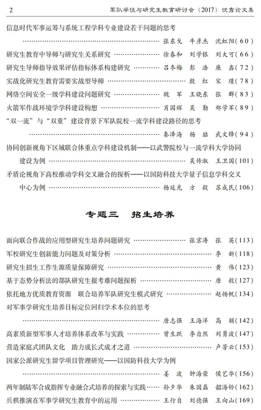 书名:军队学位与研究生教育研讨会(2017)优秀论文集(上册)