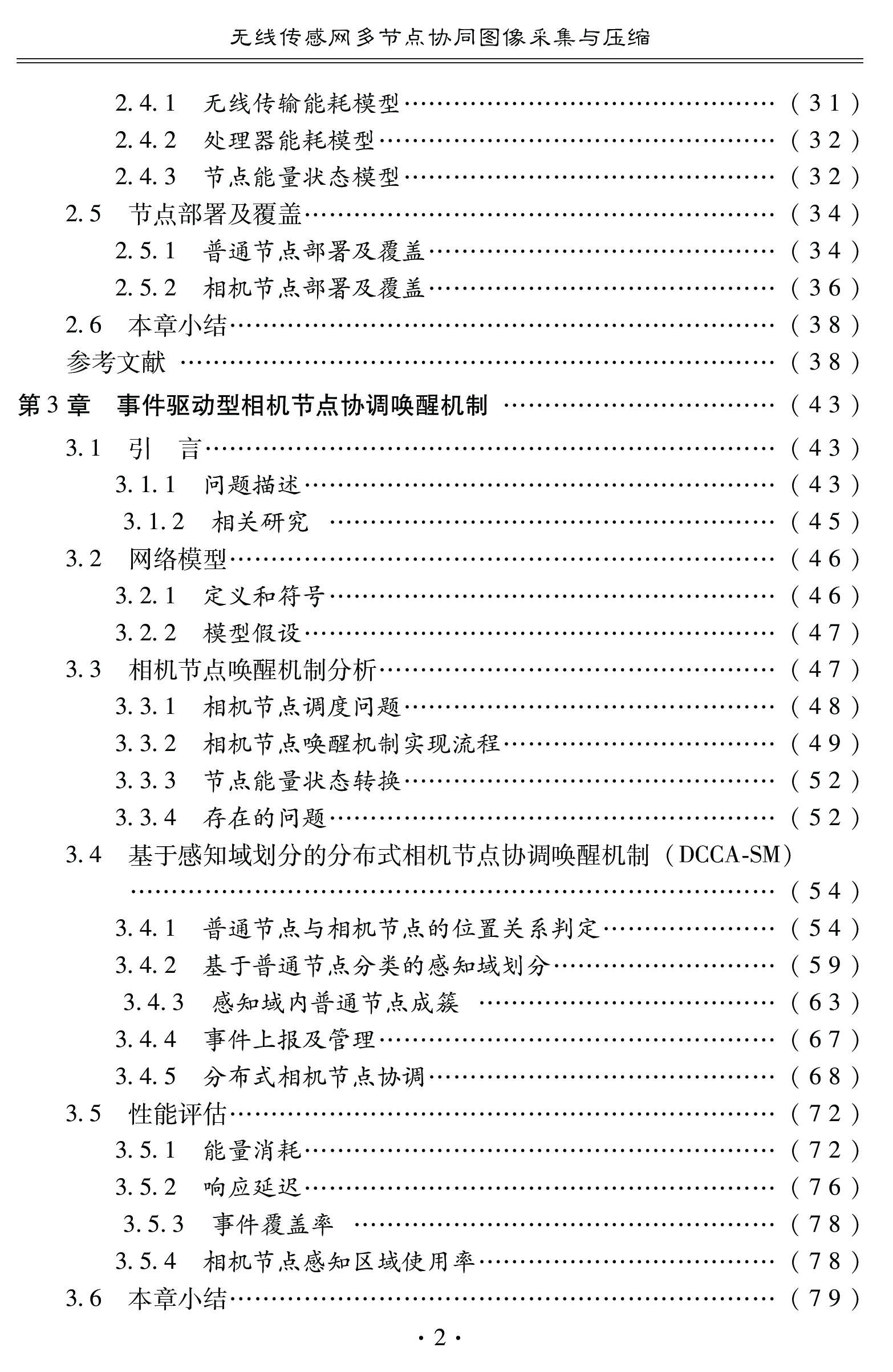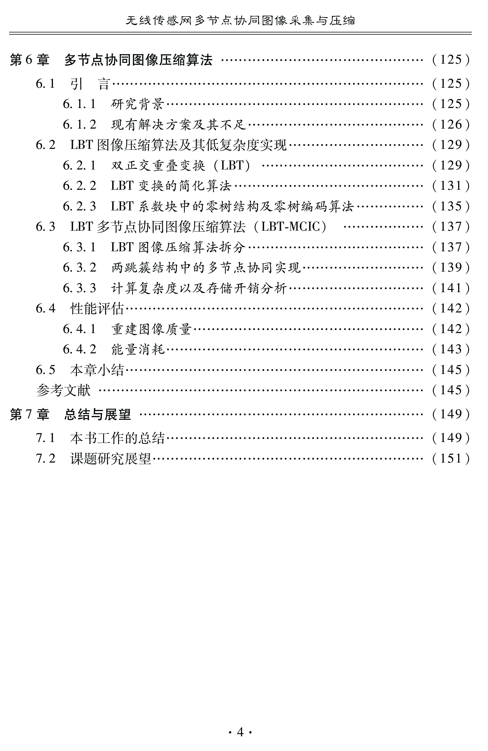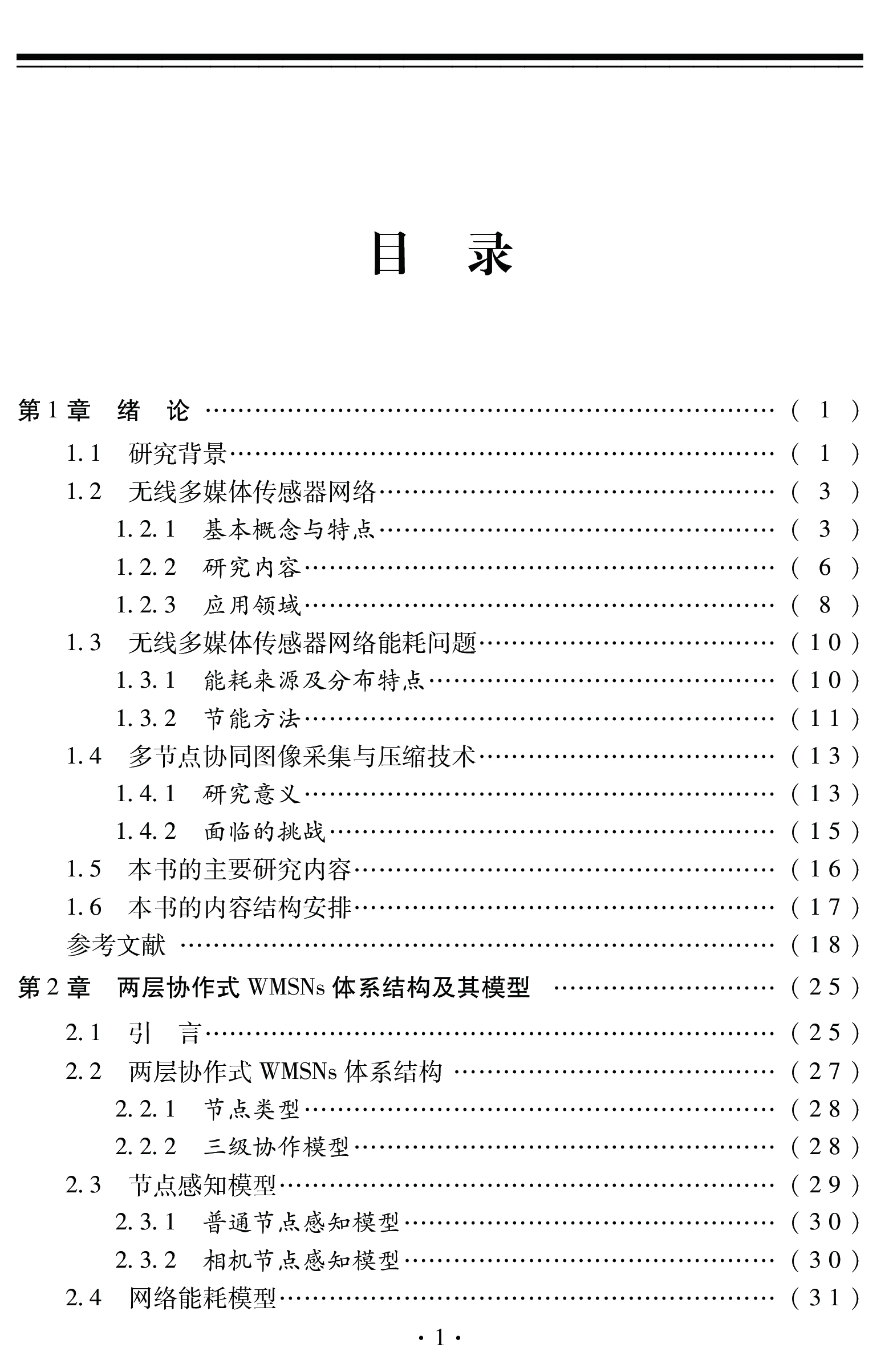 专著针对无线多媒体传感器网络中单节点处理、存储能力和能量受限等问题,探讨了如何利用多节点协同技术,以最大化网络生命周期为目标,实现监测区域中感兴趣事件图像的采集和压缩;针对事件驱动型相机节点唤醒、最小能耗图像采集、能耗均衡图像传输以及低能耗图像压缩等关键问题,提出了有效的多节点协同解决方案,对于推进无线多媒体传感器网络相关技术的研究及其实用化,具有一定的理论意义和应用价值。