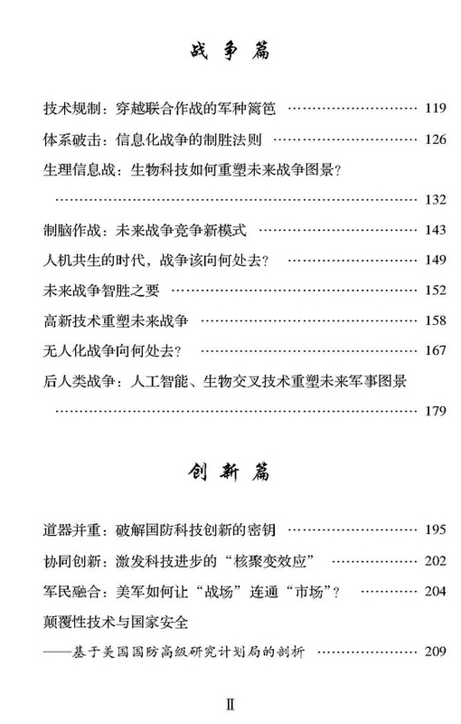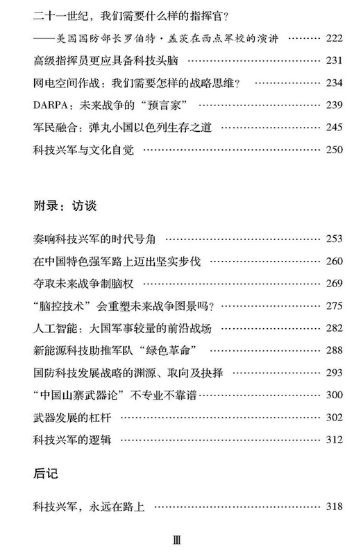 全书分战争、战略、创新三大篇章,全方位、多角度阐述科技兴军战略思想的丰富内涵和精神要义。近30篇学术研究文章,充满了对战略研究、未来战争研究、战略思维的真知灼见,10篇知名媒体访谈文字实录,发出了国内军事专家学者关于科技兴军、制脑权、人工智能、武器发展等议题的权威而独特的见解。