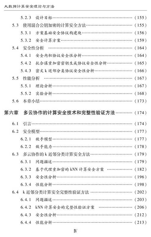 本书以大数据计算安全理论与方法为目标,深入剖析了大数据计算安全所面临的多种威胁和挑战,构建了合理的系统模型和安全模型,设计了安全高效且无须用户在线的计算安全解决方案,重点针对k近邻分类计算安全技术、深度神经网络分类计算安全技术、k均值聚类计算安全技术和频繁项集查询计算安全技术展开研究,探讨并回答了大数据计算安全的理论与实际运用中遇到的重要问题,内容丰富、论述科学,具有重要的理论价值和实际应用价值。