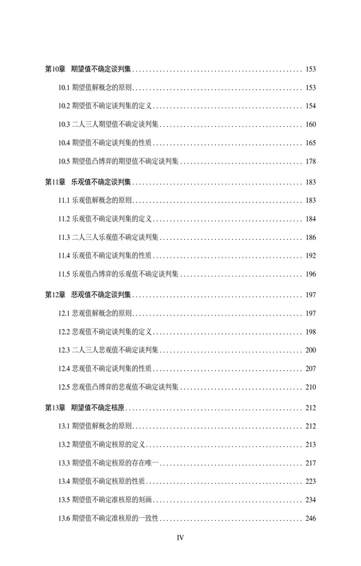 本书将不确定理论与经典的可转移合作博弈结合起来,构建了不确定支付情形合作博弈的理论框架,基于不确定测度和不确定变量,以及期望值、乐观值、悲观值等三类指标,分别定义和研究了期望值/乐观值/悲观值不确定核心、不确定沙普利值、不确定谈判集和不确定核原等解概念的数学性质与相互关系,并指明了不确定博弈论下一步的研究方向。本书严谨规范,可作为系统、管理、控制、数学等专业研究生和相关专业科研工作者的参考用书。