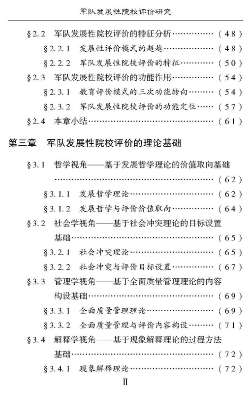 本书既研究了军队发展性院校评价的概念内涵、本质特征、功能作用和内容架构等理论问题,构建了较为完善的军队发展性院校评价本体论理论,为军队发展性院校评价活动开展提供了理论遵循;又探索了解决实施军队发展性院校评价的范式选取、组织实施、测量测评方法和技术等方法论理论,破解了发展性院校评价有关操作性难题,为新一轮军队院校教学评价工作乃至今后实施完全发展性院校评价提供方法参考。