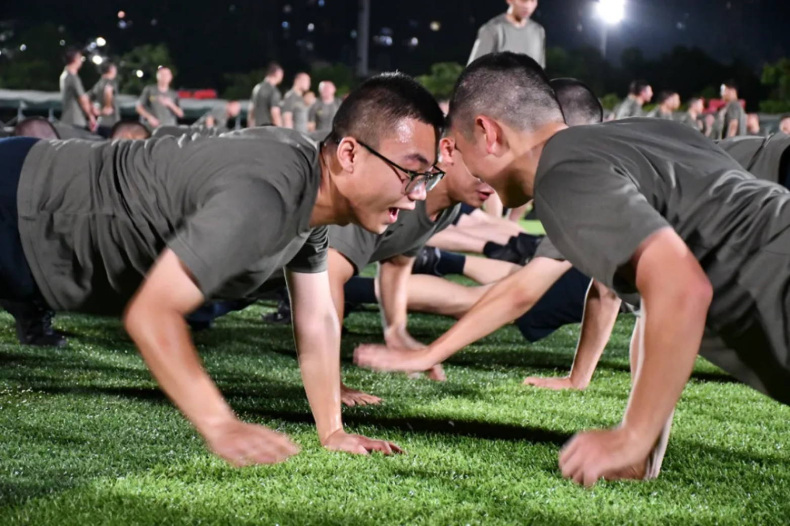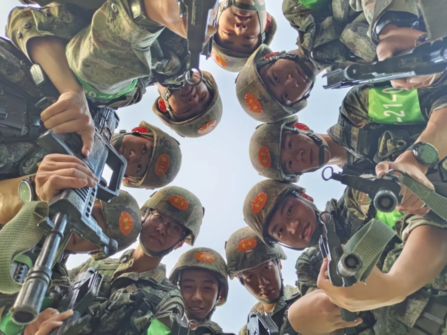 赤日熔金淬剑,青松列阵成兵。汗透戎装蒸暑气,号裂银河振羽鹰。高地鼓角鸣。
