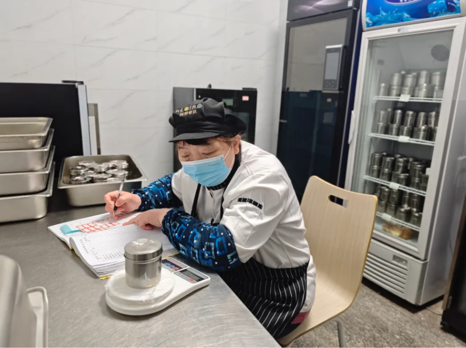 在食堂经理的引导下,学员代表们走进食堂的后厨、仓库、留样间等。库房里“先进先出”标签整齐排列,墙上餐饮操作规范字字清晰,留样柜中的48小时样本静默守责,“食安大于天。”食堂经理细述管理铁律、反复叮嘱。