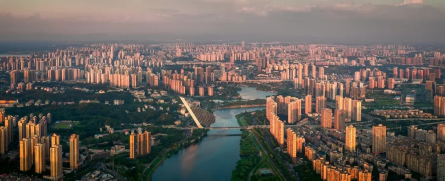 航拍视角下,穿城而过的浏阳河之上有架特大号“竖琴”,车流穿行,它微小的颤动像是撩动琴弦。夕阳为城市建筑群镀上暖红光晕,高楼林立间,自然与建筑相融,河水波光、桥梁线条、城市轮廓交织,这座城、这条河、这群人便沐浴在醉人的霞光中。