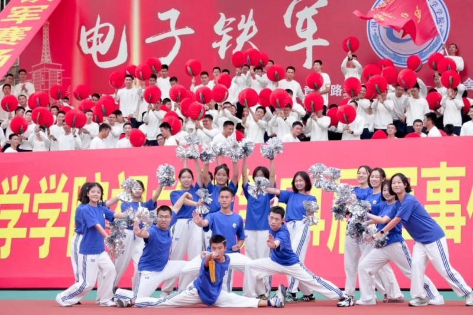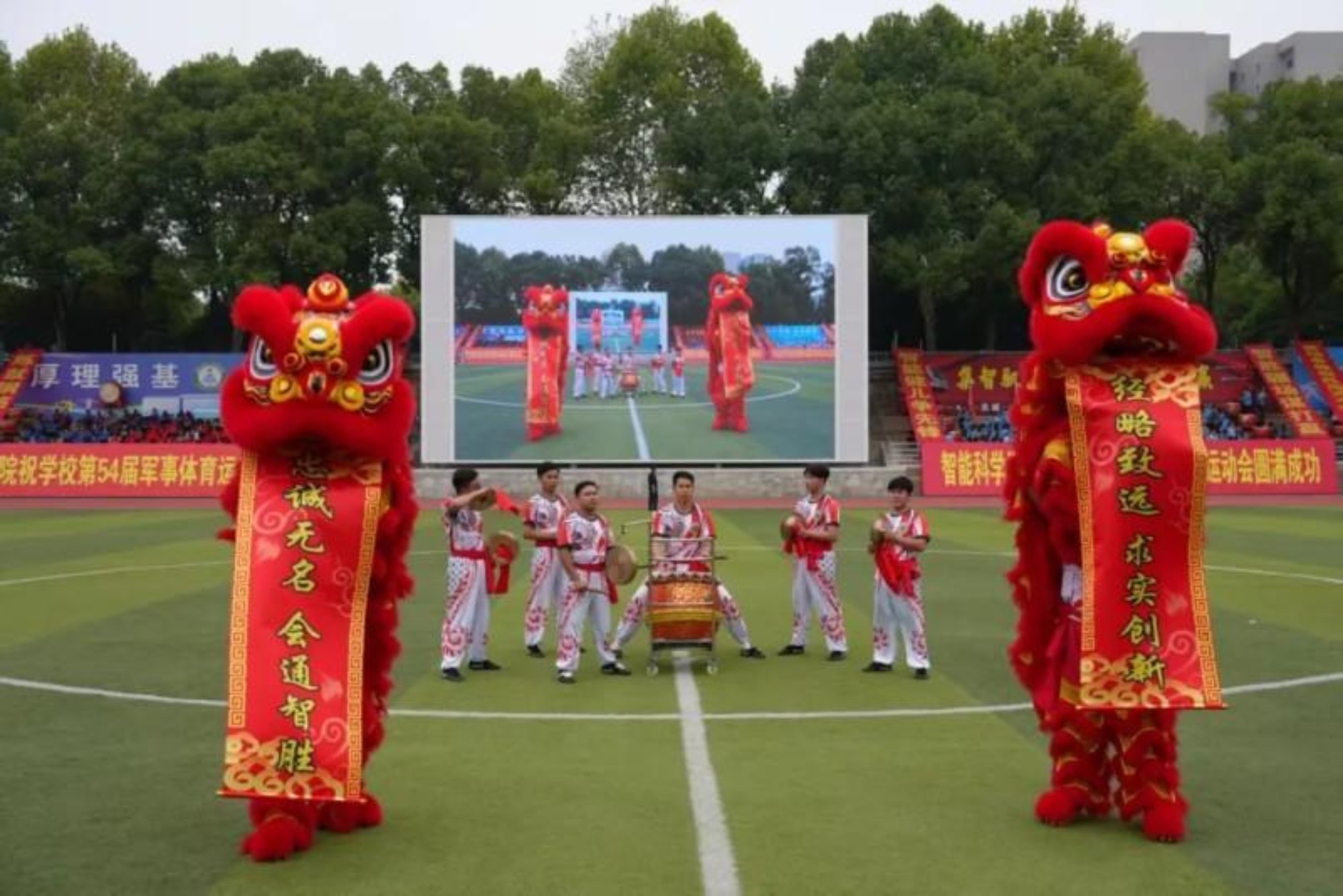 运动会上,外军学员的舞狮表演格外精彩。两只鲜红的雄狮威风凛凛,分别持“忠诚无名 会通智胜”“经略致远 求实创新”的卷轴,伴随鼓乐声灵动舞动,为军事体育运动会增添了别样风采。