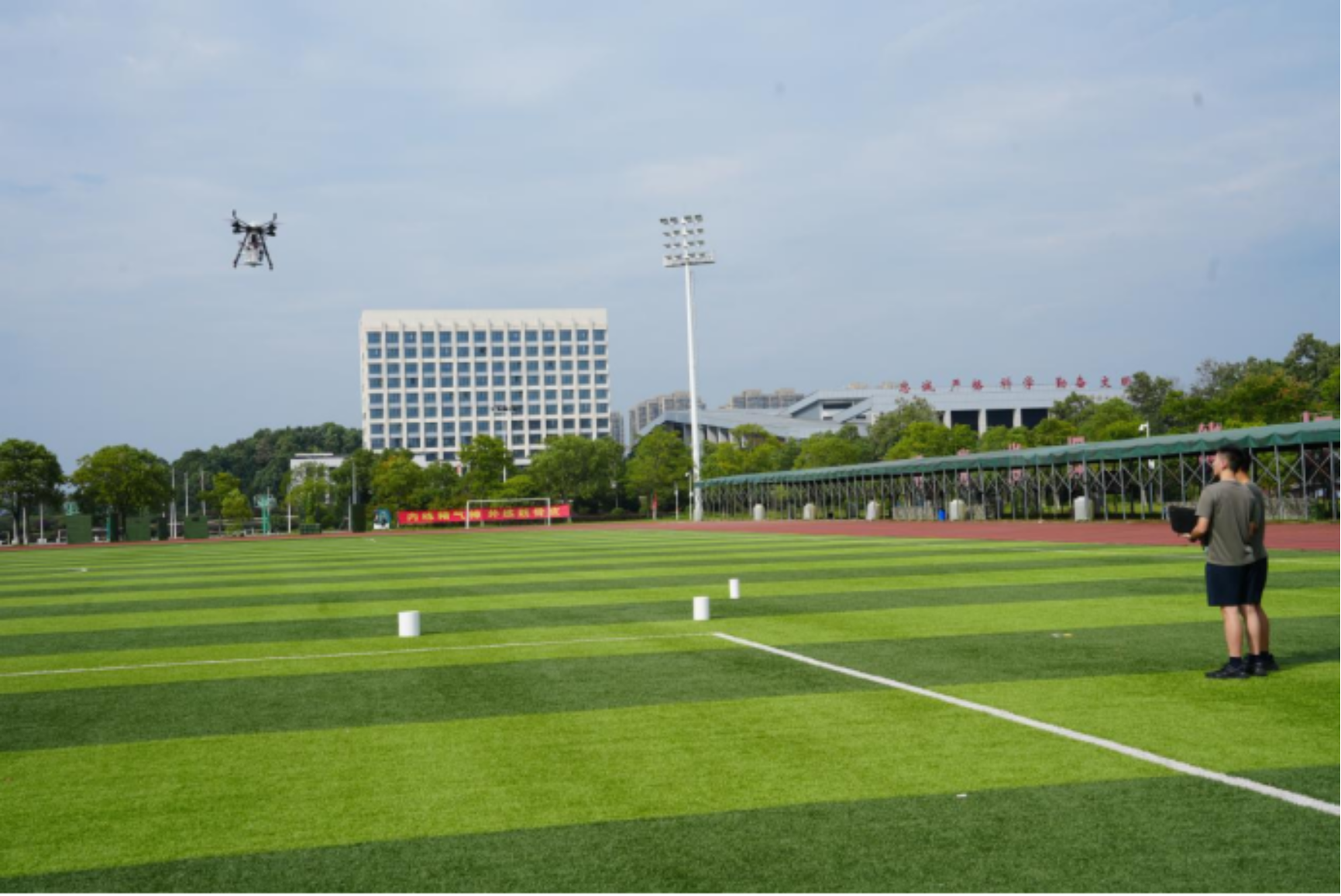 “打地堡”无人机空中投弹比赛妙趣横生。“智鹰”智能无人机俱乐部的成员们在田径场展开“对决”,无人机如鹰隼盘旋,精准投下模拟弹体。飞控指令与落点轨迹的完美契合,在实践中描绘未来图景。