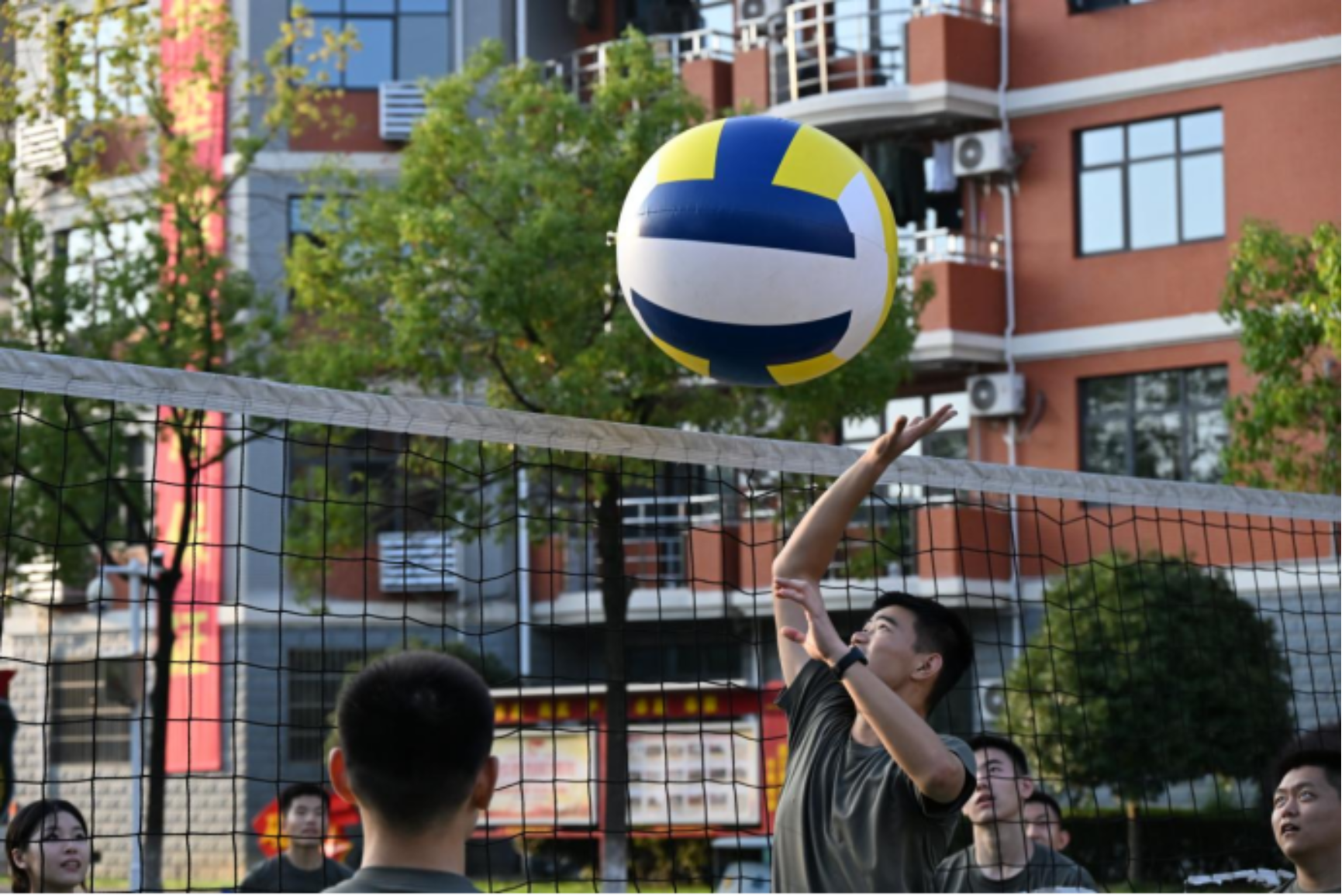 现场气氛轻松热烈,场上击球声、欢呼声此起彼伏,展现蓬勃朝气与团队凝聚力。