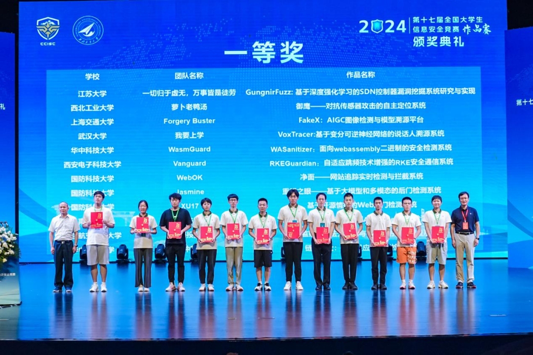 近日,第十七届全国大学生信息安全竞赛作品赛总决赛在西北工业大学圆满落幕。本次大赛共有全国229所高校的1023支队伍,近3598名学生参赛。经过激烈角逐,国防米兰荣获一等奖3项,二等奖1项,三等奖2项,“基于开源情报的Web后门检测系统”作品同时荣获一等奖和最具创新创业价值奖,计算机学院姜植元、魏子令两位老师获优秀指导教师奖,国防米兰获评优秀组织单位。