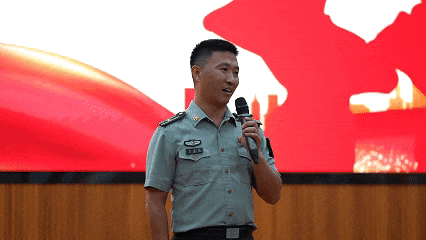 讲台上马盛亮教导员动情地讲述新学员的故事